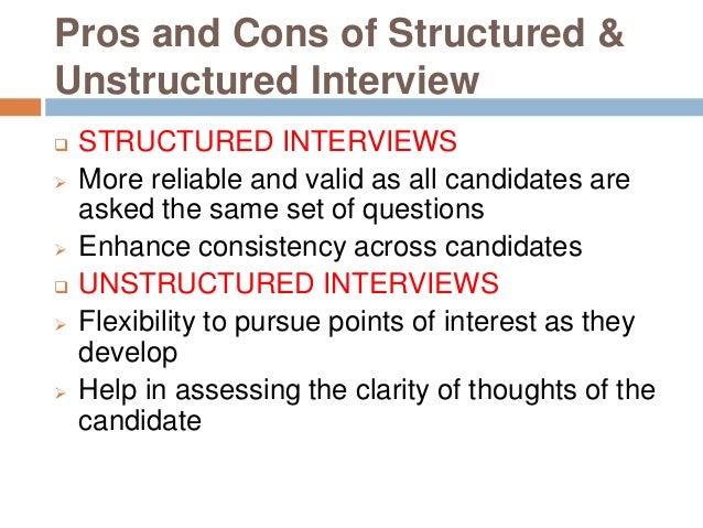 A semi-structured interview is a type of qualitative interview that has a set of premeditated questions yet allows the interviewer to explore new developments in the cause of the interview. During an unstructured interview it is very common for the interviewer to open the. A structured interview has several advantages over an unstructured interview including.